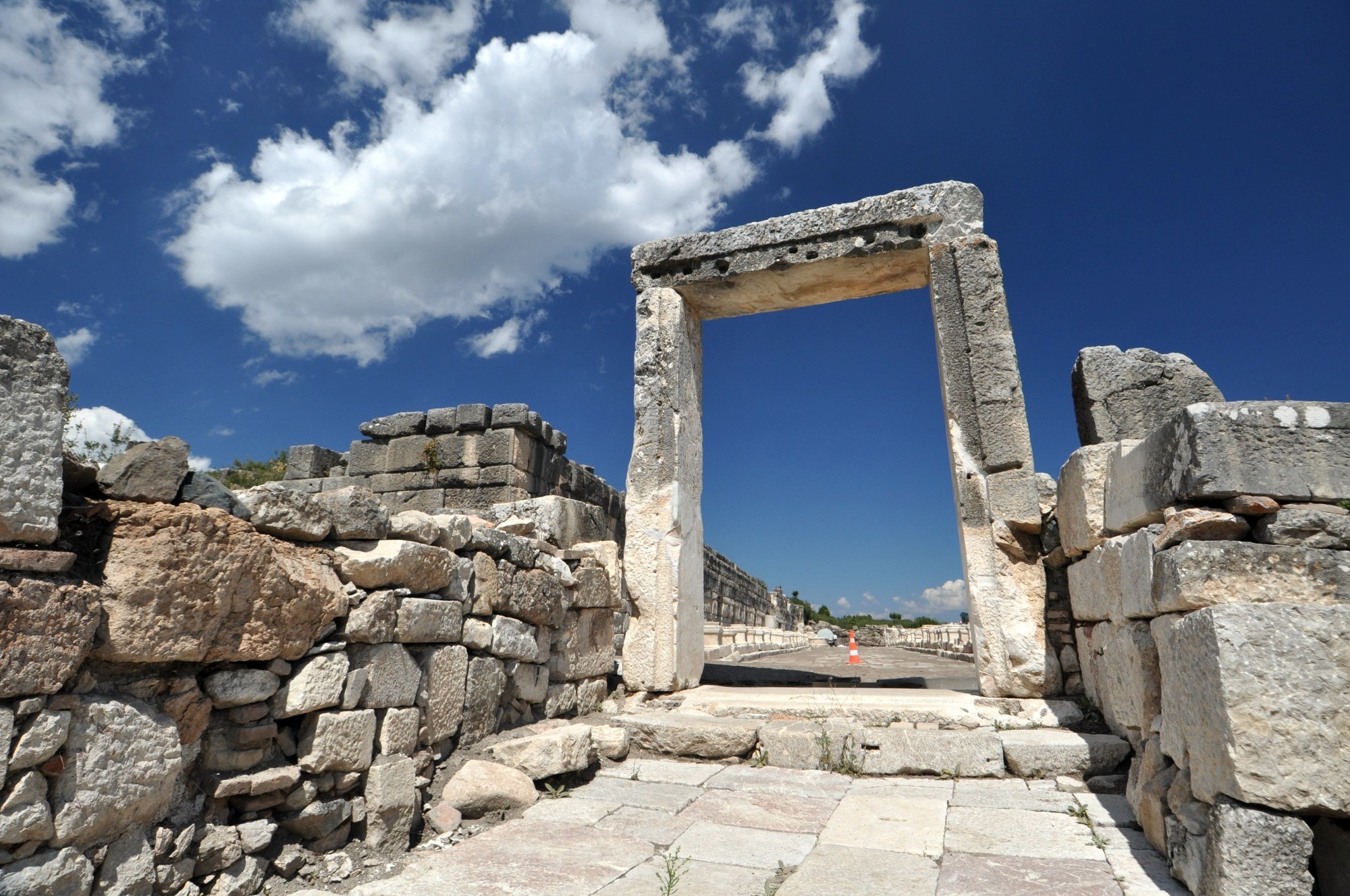 Od stadionu do położonej wyżej części miasta prowadzi najpierw wąska ścieżka, a następnie nieźle zachowana droga z czasów antycznych. Część tej drogi ciągle czeka na odsłonięcie, ale obecnie widoczne odcinki dają dobre wyobrażenie o jej dawnej formie. Pod drogą przebiegały systemy kanalizacji oraz rury doprowadzające wodę pitną do miasta, datowane na okres rzymski.