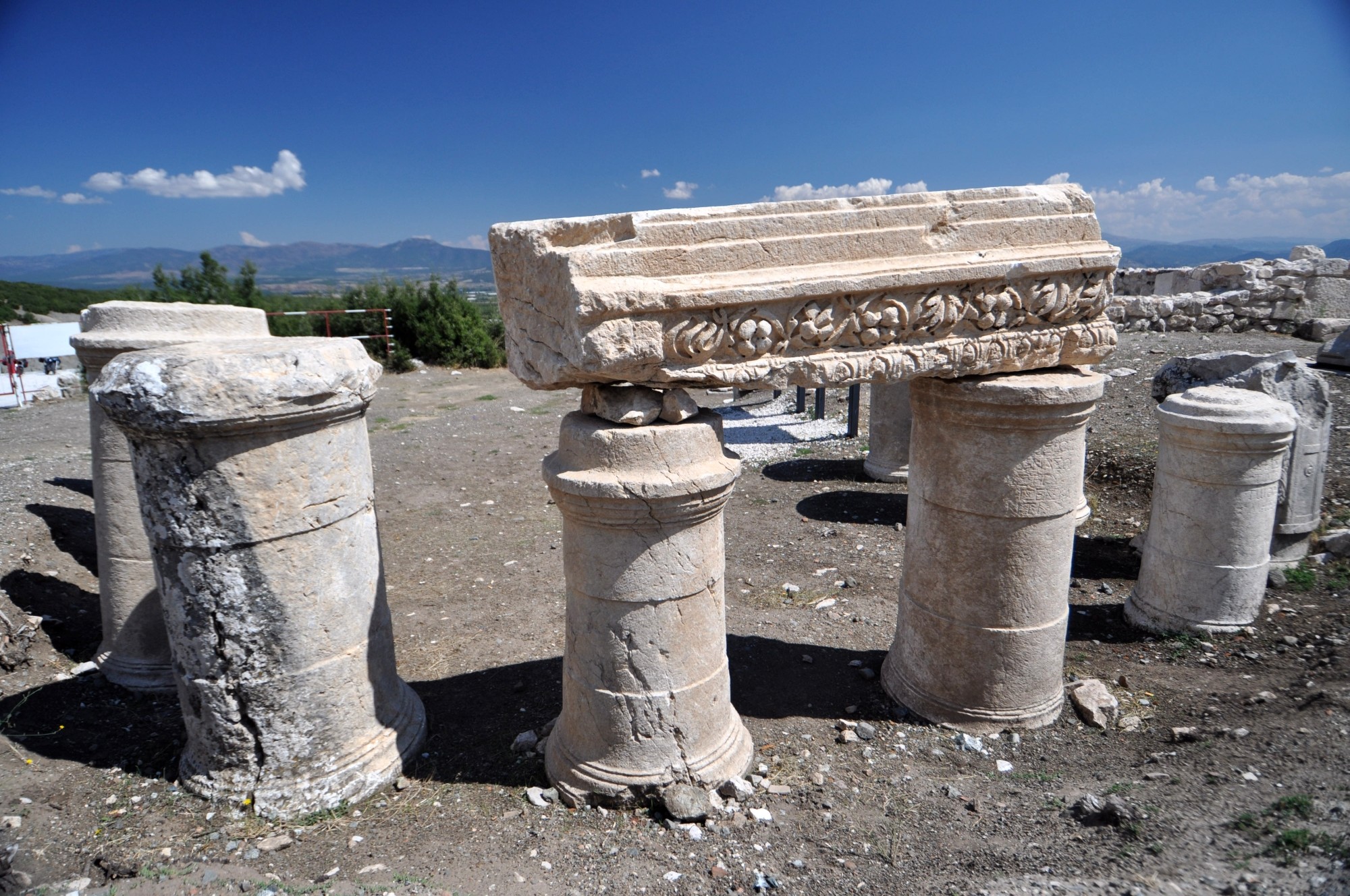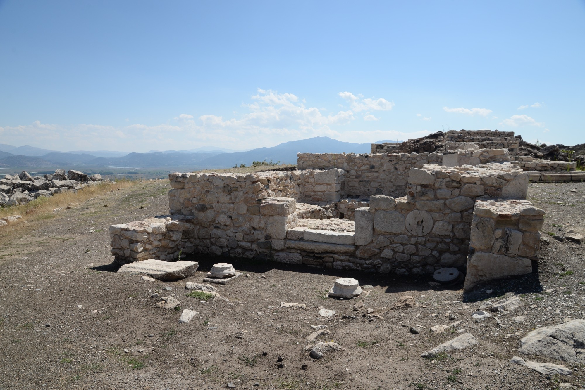 Na platformie w pobliżu teatru znajdują się ruiny kilku dużych budowli, najprawdopodobniej świątyń. Wzniesiono je w porządkach doryckim i korynckim.