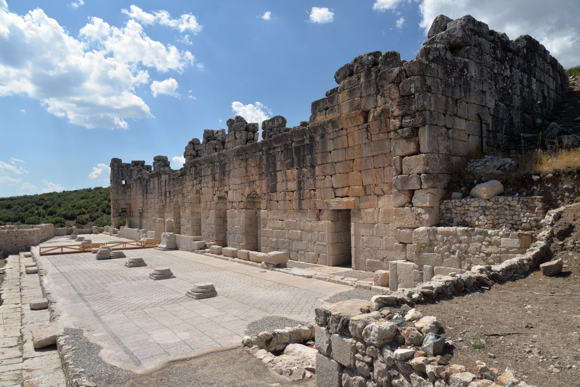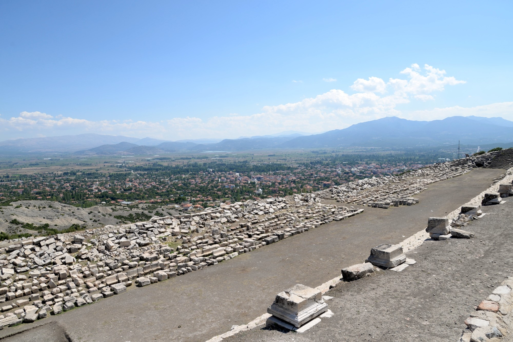 Drogą tą dochodzi się do agory czyli głównego placu miasta. Do naszych czasów zachowały się płyty kamienne, którymi wyłożona była agora oraz marmurowy zbiornik na wodę. W okresie bizantyjskim, około VI-VII wieku n.e., taras podtrzymujący agorę został przekształcony w obwarowania, chroniące wówczas to miasto przed najazdami.