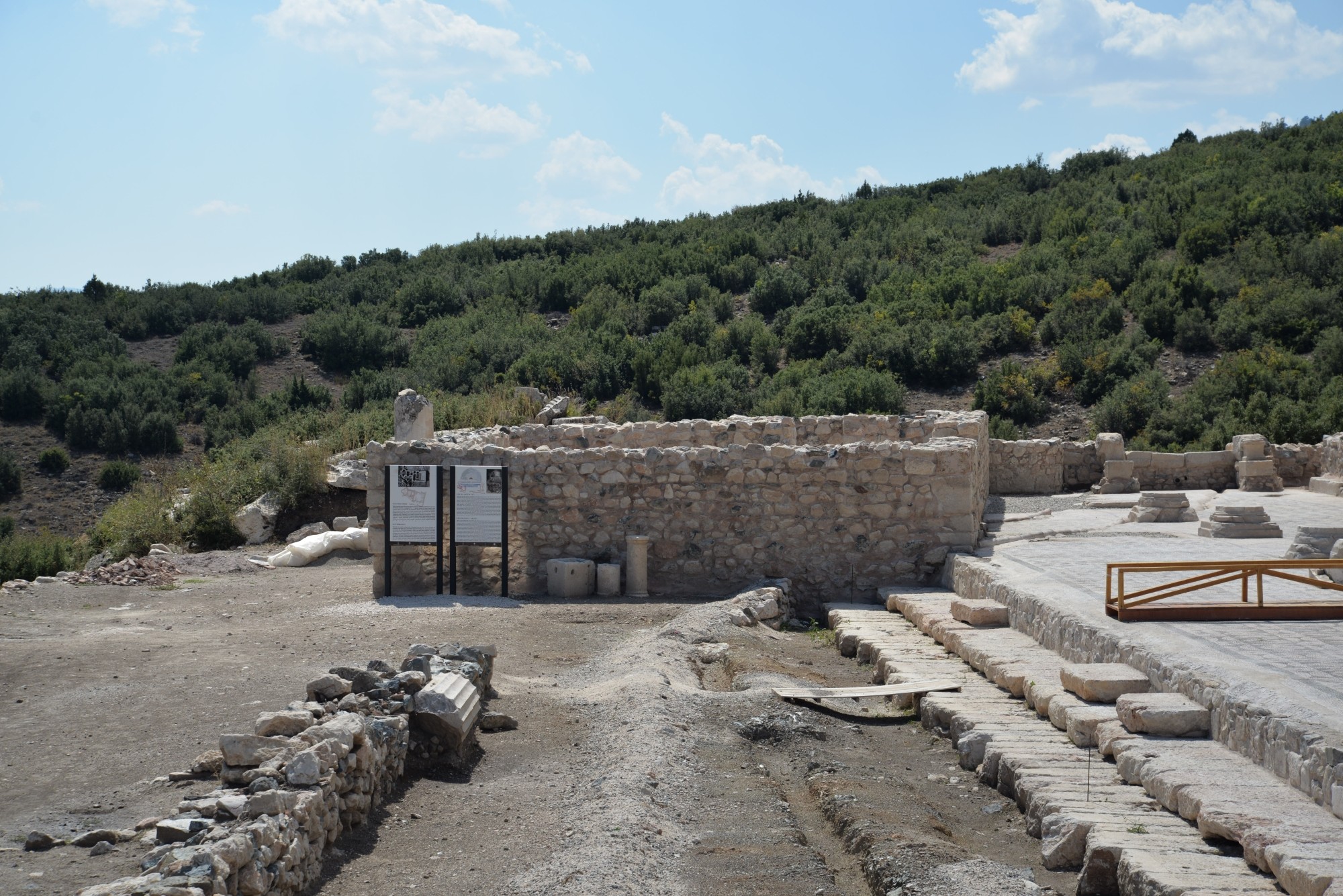Tuż obok buleuterionu stoją ruiny łaźni rzymskich, z widocznymi fragmentami ogrzewania podłogowego oraz płytek z terakoty.