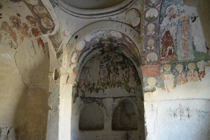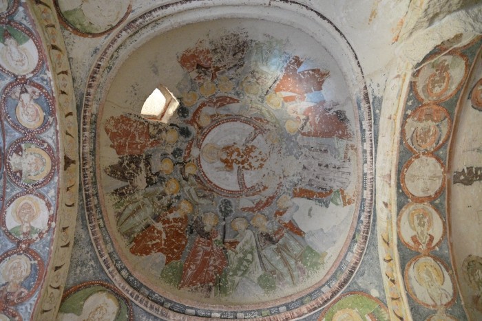 Zaledwie krótki spacer dzieli najsłynniejsze kościoły w skansenie Göreme od nieco zapomnianego Kościoła Złego Oka, pięknie odrestaurowanego i pilnowanego przez zamieszkującego pobliski domek skalny strażnika. Odwiedziny w tym kościółku to miła chwila wytchnienia od tłumów turystów, a przy tym - okazja do spokojnego obejrzenia fresków bizantyjskich. Tutaj nikt nie zwróci Wam uwagi z powodu wykonania kilku fotografii, ale pamiętajcie, że światło lampy błyskowej jest szkodliwe dla liczących sobie 10 wieków dzieł sztuki.