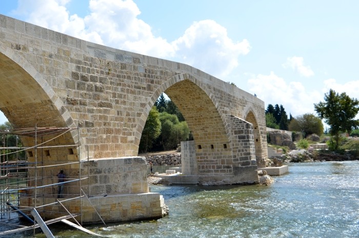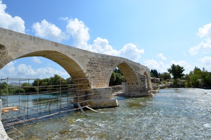 Seldżucki most, który po dziś dzień stoi nad rzeką Köprüçay, jest budowlą znacznie skromniejszą niż jego rzymski poprzednik. Wystarczy wspomnieć, że jest o połowę węższy i znacznie krótszy, a wspiera się na siedmiu łukach. Jeżeli przypatrzeć się uważnie materiałowi budowlanemu, to wśród kamiennych bloków można wypatrzeć elementy dawnego akweduktu. Prowadzone w latach 90-tych XX wieku prace restauracyjne odsłoniły kamienne inskrypcje na budowli - zarówno w języku greckim, jak i po arabsku. W 2013 roku most przeszedł kolejną renowację.